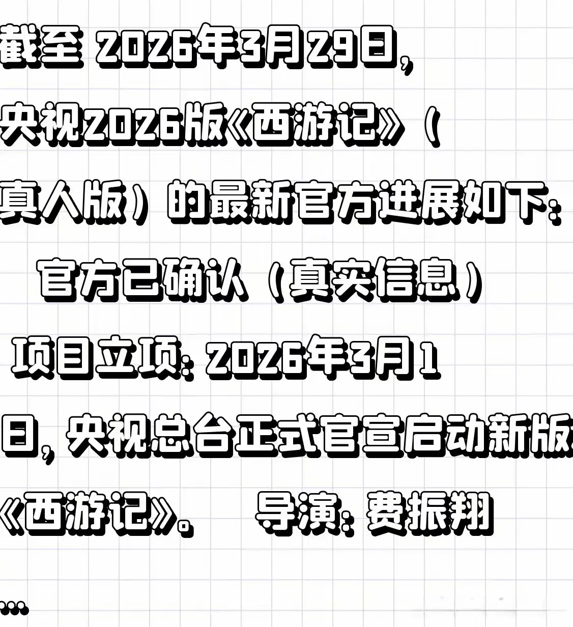 结论很直接:没有任何一条“2026年3月1日官宣真人版《西游记》”的权威信息。